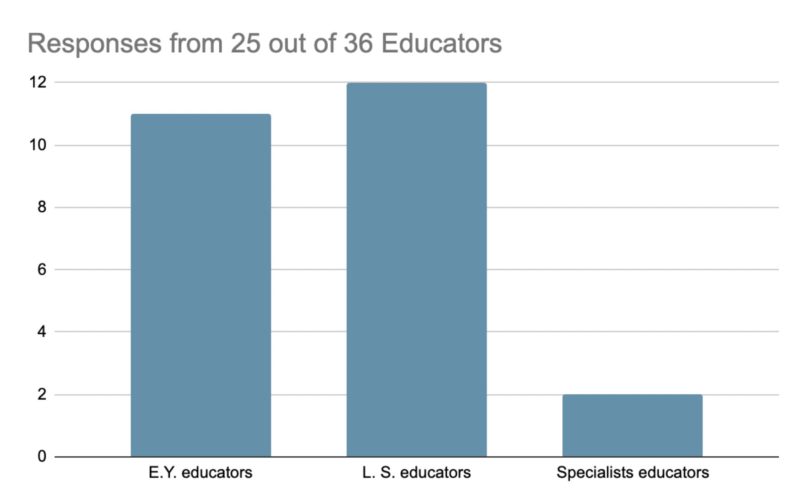 15 Early Years homeroom educators: Toddlers 1, Toddlers 2, Prek3, Prek4 and Kindergarten.