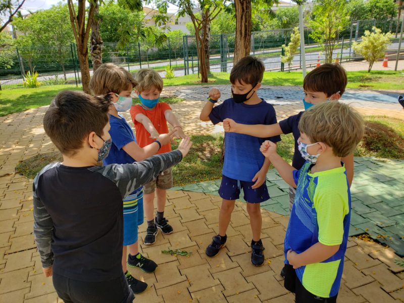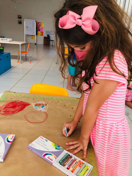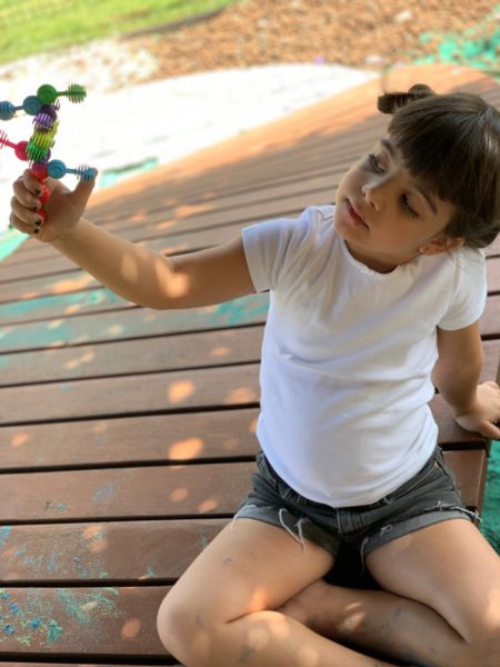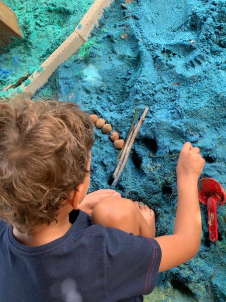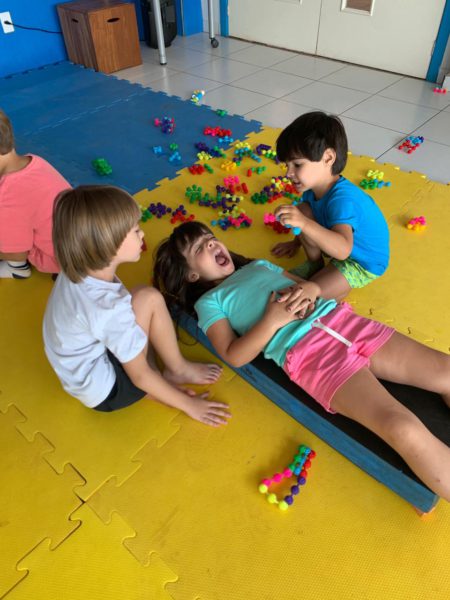 At first, when children went to the patio without any tools, they seemed they forgot how to play. It took a while for some of them to start to organize themselves and play. Some children did not play at all, they were walking around teachers asking to do, saying that they were bored. When children had a few materials or instructions, they reaction was the opposite. They seemed to remember how to play, they felt more comfortable, they did not want to live the patio and they could create, imagine and innovate.