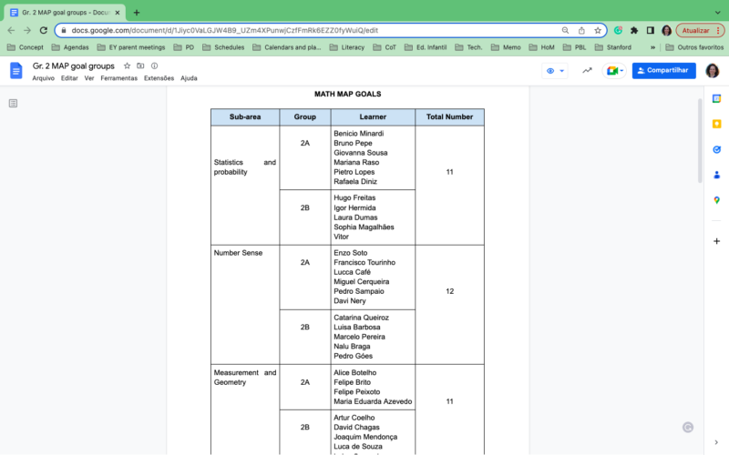 Our first MAP test results showed that our learners were underperforming in math. Educators and coordination got together to think about strategies that would improve their math learning. We decided to schedule a period for learners in both groups (2A and 2B) to be separated in centers to focus on the different math areas, according to their need for improvement.