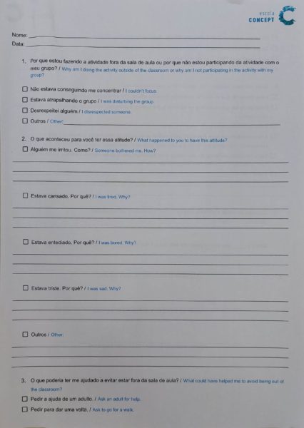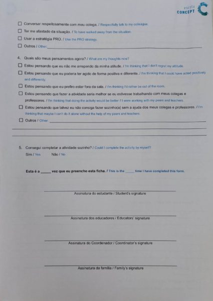 2 - Students and educators decided together that after 2 warnings - when students presented disruptive behavior - students would have to answer the reflection form by themselves