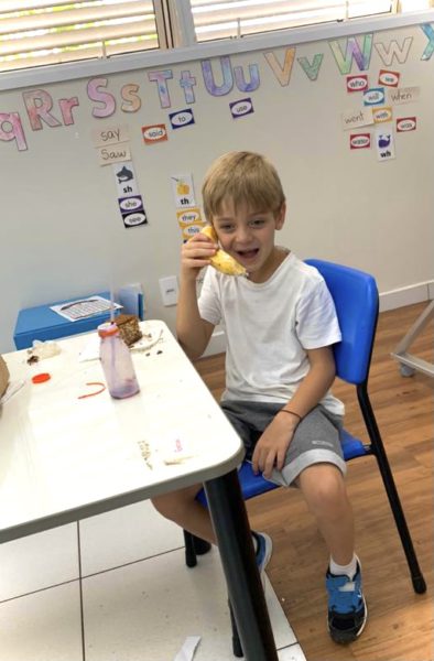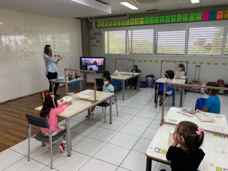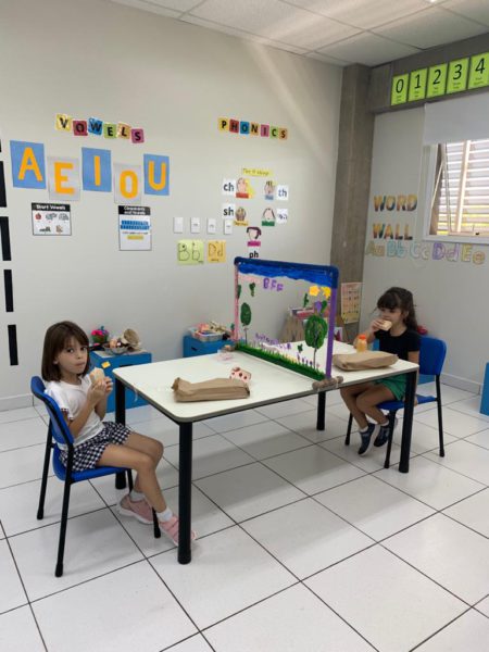 Teachers arranged the seatings so students would feel confortable with classmates they were close to during virtual learning. Students' interactions were observed during activities, free time and snack time and pictures were taken to illustrate the moments.