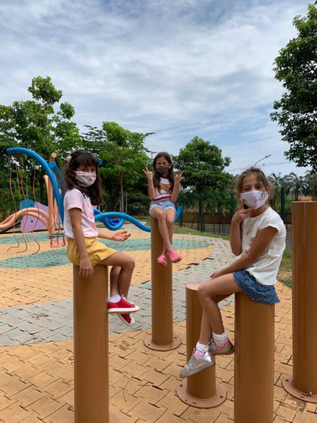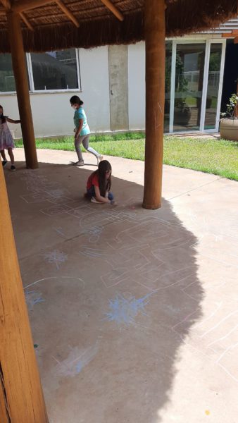 When we returned to school, after a period of social distance and virtual classes, in which touching, hugging, and close conversation were not being daily in the children's lives. It was possible to notice that students whose families have a relation out of school were less concearned about the protocols than the others, sitting on each other's tables constantly without asking for permition. However, we observed that children are capable of adaptations and reflections on this new learning, understanding that we need new ways to get closer and that we don't always need touch to show emotions and feelings. Playing can be reframed and performed in different ways.
