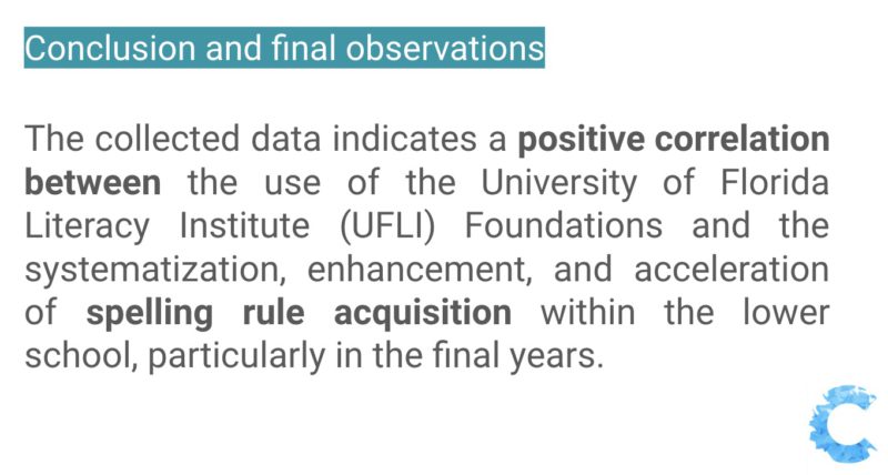 The collected data indicates a positive correlation between the utilization of the University of Florida Literacy Institute (UFLI) Foundations and the systematization, enhancement, and acceleration of spelling rule acquisition within the lower school, particularly in the final years. The observed improvements highlight the potential of UFLI Foundations in fostering effective learning outcomes.